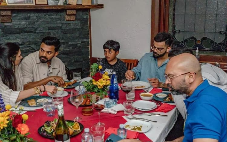 अथिया शेट्टी और केएल राहुल की लेटेस्ट तसवीरें सुर्खियों में छाई हुई है. फोटो में लववबर्ड्स एक-दूसरे के बगल में बैठे हुए है और लंच या डिनर करते दिख रहे है. उनके साथ विराट कोहली, राहुल द्रविड़ और दिनेश कार्तिक भी नजर आ रहे है.