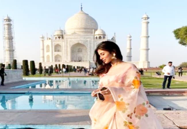 मौनी रॉय ने अपने इंस्टाग्राम पर अपनी कुछ बेहद हसीन तसवीरें पोस्ट की है. इन तसवीरों में वो ताजमहल का दीदार करते नजर आ रही हैं. व्हाइट एंड ऑरेंज साड़ी में मौनी किसी परी से कम नहीं लग रही है. हर तसवीर उनकी कुछ खास है. कभी ताज महल के सामने तो कभी कैमरे को दूसरी ओर देखकर वो फोटोशूट करवाती नजर आ रही है.