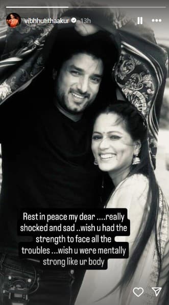 नितिन चौहान के को-स्टार्स सुदीप साहिर और सायंतनी घोष ने उनके निधन की जानकारी दी. हालांकि उन्होंने बताया कि उनके पास इस बारे में ज्यादा जानकारी नहीं है. विभूति ठाकुर ने नितिन के साथ अपनी एक फोटो इंस्टा स्टोरी पर पोस्ट की है. पोस्ट में उन्होंने लिखा, भगवान आपकी आत्मा को शांति दें. दुखी और सदमे में हूं. काश आपको अपनी सारी मुश्किलें का सामना करने के लिए शक्ति मिली होती. काश आप मेंटली स्ट्रांग होते अपने शरीर की तरह.