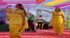 sapna chaudhary dance video: देसी क्वीन सपना चौधरी आज हर कोई जनता हैं. सपना जब भी ठुमके लगाती है, दर्शक बेकरार हो जाते है. सोशल मीडिया पर उनके पुराने डांस वीडियोज आए दिन वायरल होते रहते है. देसी क्वीन ने एक वीडियो शेयर किया है, जिसमें वो येलो सलवार-सूट पहनकर जमकर डांस करती दिख रही है. ये वीडियो इंटरनेट पर वायरल हो रहा है.