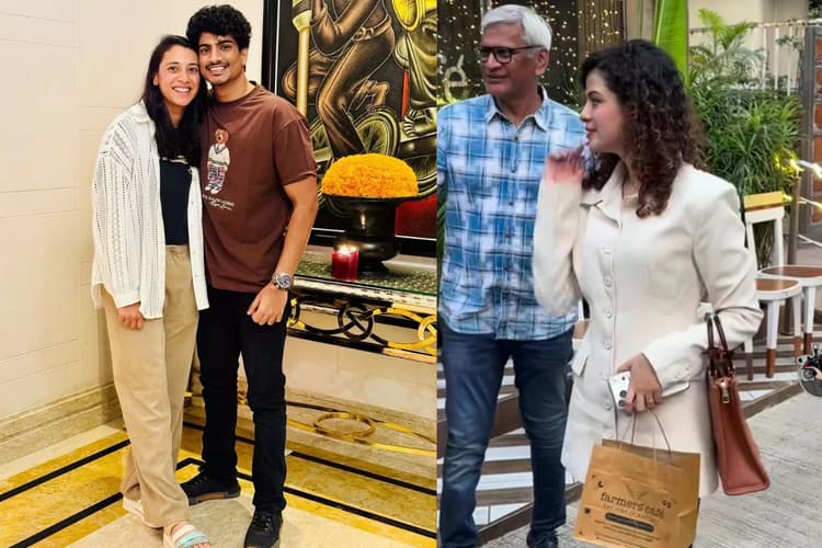 हाल ही में मुंबई के एक रेस्टोरेंट के बाहर एक खास नजारा देखा गया. इस वीडियो में पलाश मुच्छल की बहन, मशहूर सिंगर पलक मुच्छल को स्मृति मंधाना के पिता श्रीनिवास मंधाना के साथ देखा गया. वहां मशहूर संगीतकार मिथुन भी मौजूद थे. सबसे ज्यादा ध्यान उस पल ने खींचा जब पलक मुच्छल ने स्मृति के पिता के पैर छूकर उनका आशीर्वाद लिया. इस वीडियो के वायरल होते ही फैंस के चेहरे पर खुशी लौट आई है. लोग मान रहे हैं कि दोनों परिवारों के बीच अब कड़वाहट खत्म हो गई है और शायद स्मृति-पलाश फिर से एक साथ आ गए हैं, हालांकि कुछ लोग इसे पुराना वीडियो भी बता रहे हैं, लेकिन फिलहाल सोशल मीडिया पर पैचअप की खबरें ही सबसे ज्यादा ट्रेंड कर रही हैं.