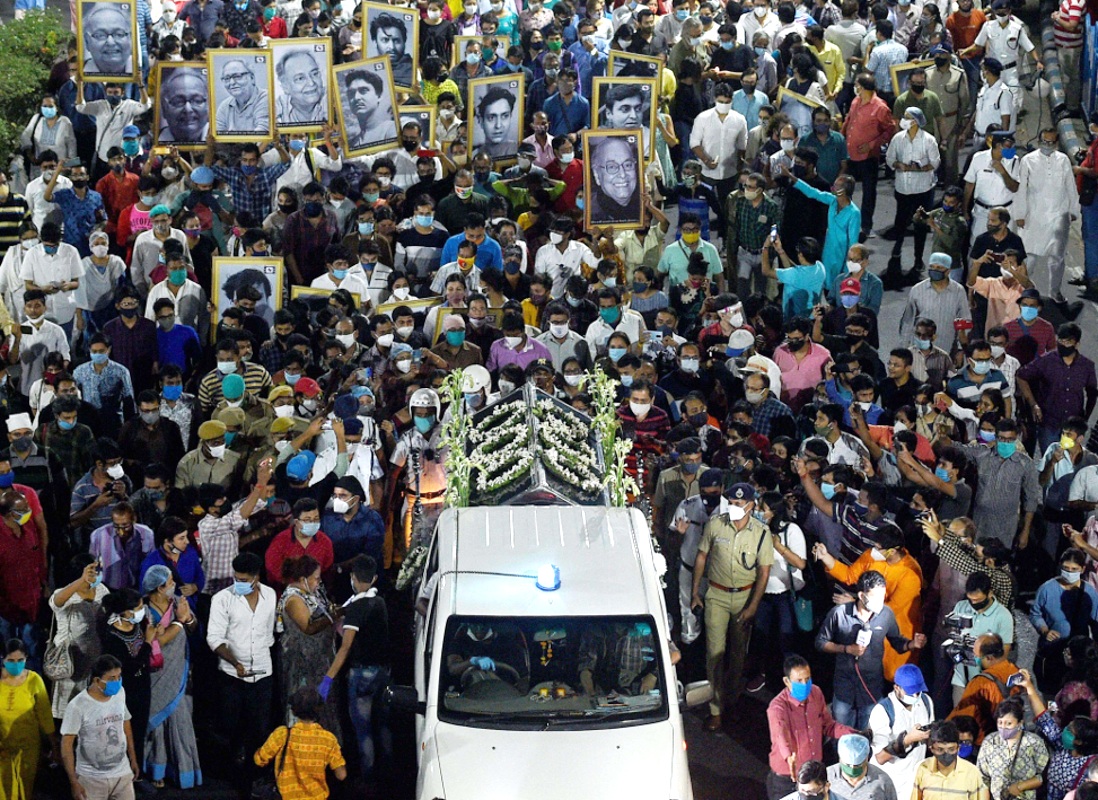 पश्चिम बंगाल की मुख्यमंत्री ममता बनर्जी, उनके मंत्रिमंडल के सहयोगियों के साथ ही कई फिल्मी हस्तियां भी अभिनेता की अंतिम यात्रा में शामिल हुईं. सड़क के दोनों ओर सैकड़ों लोग खड़े थे और पास के घरों में लोगों की भीड़ अपने पसंदीदा अभिनेता के अंतिम दर्शन के लिए छतों पर खड़ी थी. अभिनेता की अंतिम यात्रा केवड़ातला श्मशान घाट पर पूरी हुई. अंतिम संस्कार से पहले उन्हें बंदूकों से सलामी दी गयी.