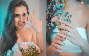 दरअसल तेजस्वी प्रकाश ने इंस्टाग्राम पर कुछ तसवीर शेयर की है. इन फोटोज में एक्ट्रेस को डायमंड रिंग फ्लॉन्ट करते हुए देखा जा सकता है. पहली फोटो में तेजा बड़ी सी स्माइल के साथ रिंग दिखा रही है, वहीं दूसरी फोटो में वह रिंग के साथ हाथ में हाथ में गुलदस्ता लिए पोज दे रही हैं. तसवीर को देखकर दोनों के फैंस काफी एक्साइटेड हैं. फोटोज के साथ-साथ तेजा का कैप्शन फैंस के दिलों की धड़कन को और भी बढ़ा रहा है. तेजस्वी ने लिखा, बड़ा दिन! यह एक हां है, जब अंगूठी इतनी ड्रिमी है. मैं पूरी तरह से विस्मय में हूं कि यह अंगूठी @ornaz_com . से कितनी सुंदर दिखती है. मेरी शानदार डायमंड रिंग को करीब से देखने के लिए बाईं ओर स्वाइप करें. अपनी लगाई की अंगूठी बनाने के लिए @ornaz_com चेकआउट करें.