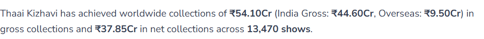 #ThaaiKizhavi crosses ₹50 Crores+ Worldwide GBOC in just 10 days! 💥