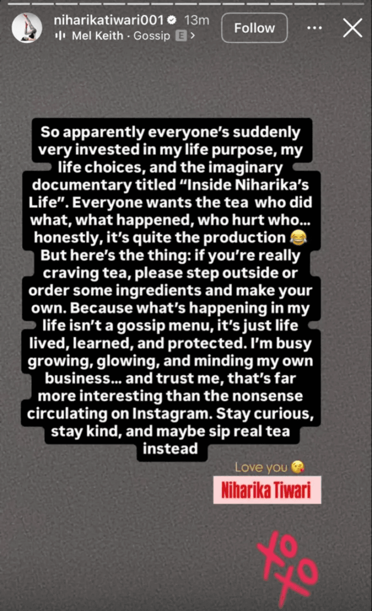 वहीं, निहारिका तिवारी ने भी इन अफवाहों पर तंज कसते हुए अपनी बात रखी. उन्होंने कहा कि उनकी जिंदगी कोई गॉसिप शो नहीं है और लोग बेवजह उसमें मसाला ढूंढ रहे हैं. अब जब दोनों ने खुलकर सच्चाई बता दी है, तो विवाद लगभग खत्म होता दिख रहा है. फिलहाल दोनों ही इस ड्रामे को पीछे छोड़कर अपनी जिंदगी और ग्रोथ पर फोकस करती नजर आ रही हैं.
