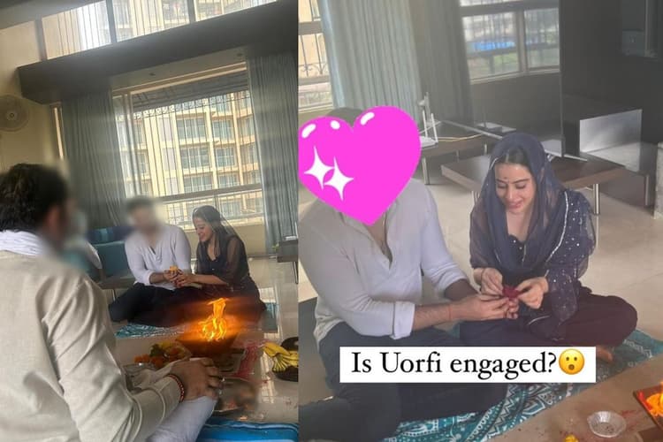 फैंस का मानना है कि उर्फी जावेद ने सीक्रेट बॉयफ्रेंड संग गुपचुप सगाई कर ली है. तस्वीर में उर्फी और रहस्यमय व्यक्ति को हवन कुंड के सामने पूजा करते हुए दिखाया गया है, जिसमें एक पंडित भी मौजूद है.