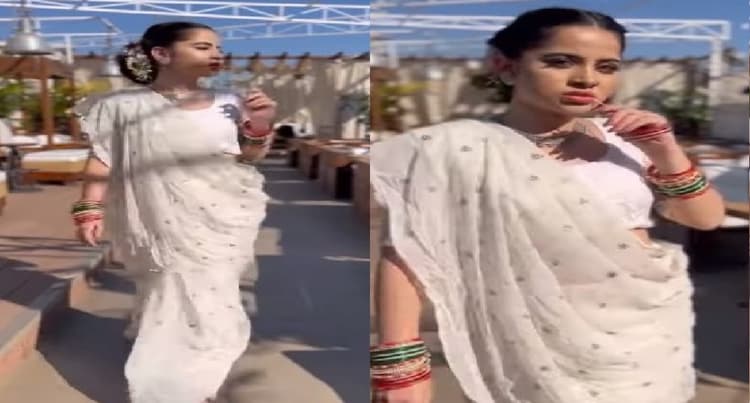 उर्फी जावेद ने लेटेस्ट वीडियो पोस्ट किया है, जिसमें वो आलिया भट्ट की फिल्म गंगूबाई काठियावाड़ी से उनके लुक को मैच करती नजर आ रही है. व्हाइट साड़ी, बालों में गजरा, गले में नेकलेस, हरी- लाल चूड़ियां में बेहद खूबसूरत लग रही है. फिल्म के गाने ढोलिदा गाने पर जबरदस्त एक्सप्रेशन देती दिख रही है.