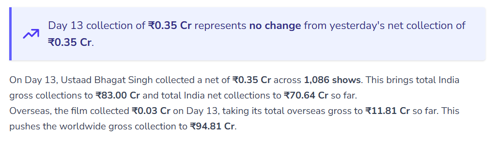 13वें दिन 'उस्ताद भगत सिंह' की रफ्तार पड़ी धीमी, 100 करोड़ का आंकड़ा मुश्किल