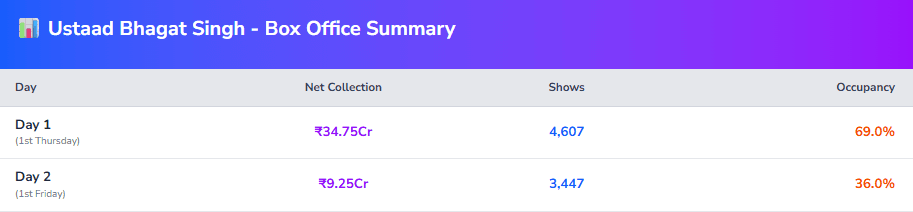 Ustaad Bhagat Singh Box Office Day 2