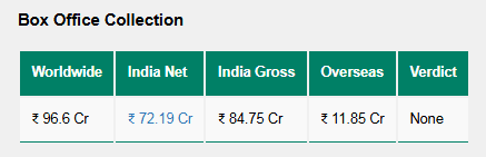 फिल्म को लोगों से मिला-जुला रिस्पॉन्स मिला. इसके बावजूद इसने भारत में लगभग 72.19 करोड़ रुपये और दुनिया भर में करीब 96.6 करोड़ रुपये की कमाई की.