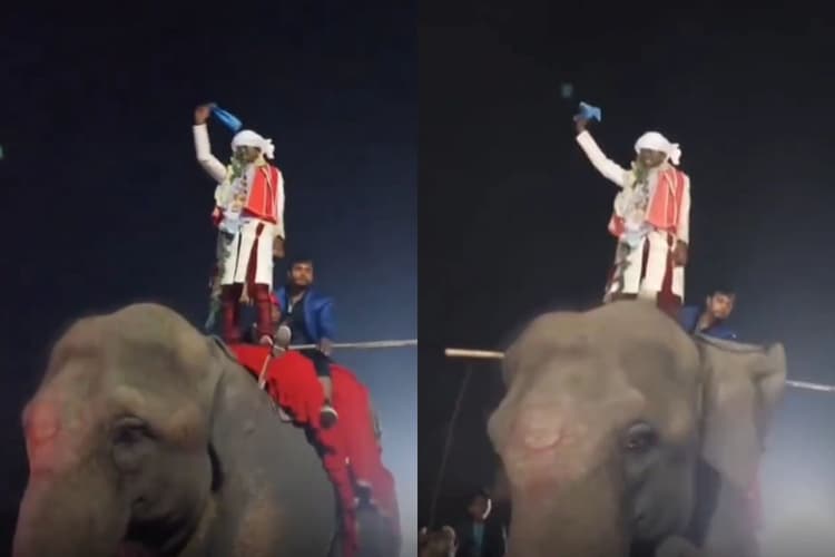 Viral Video: कोई भी शादी या पार्टी बिना पवन सिंह के गाने के अधूरी है. इसी बीच सोशल मीडिया पर एक मजेदार वीडियो वायरल हो रहा है, जिसमें एक दूल्हा घोड़े पर नहीं हाथ पर सवार होकर पवन सिंह के सुपरहिट गाने ‘छलकता हमरो जवनिया ए राजा’ गाने पर झूम रहा है. वायरल हो रहे वीडियो में उसे सफ़ेद रंग की शेरवानी में हाथ में रुमाल लिए कूद-कूदकर डांस करते देखा जा सकता है.