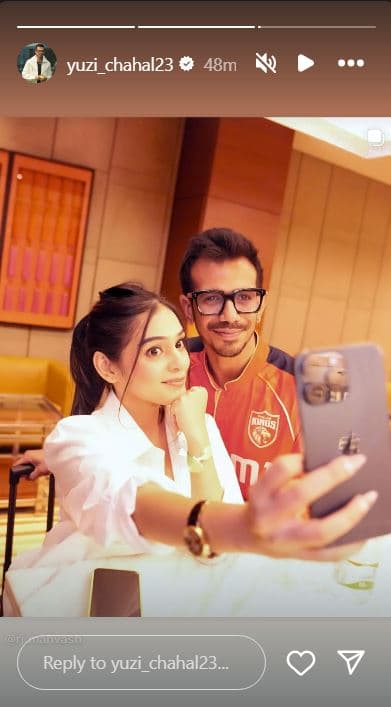 युजवेंद्र ने अपनी इंस्टाग्राम स्टोरी पर एक फोटो शेयर की. जिसमें दोनों को पोज देते हुए देखा जा सकता है. जहां आरजे व्हाइट कलर के शर्ट में थी. वहीं क्रिकेटर पंजाब किंग्स की ड्रेस में नजर आ रहे थे. वे सेल्फी लेने की कोशिश कर रहे थे. हालांकि तभी किसी ने फोटो ले लिया. इसके अलावा महवश ने इंस्टाग्राम पर फोटोज की एक सीरीज पोस्ट की, जब वह आईपीएल मैंच देखने गई थी.