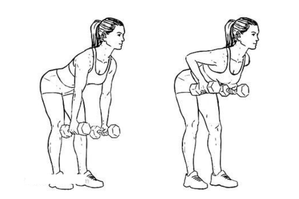- थोड़ा झुकें और डम्बल को कोहनी मोड़ते हुए पीछे खींचें.