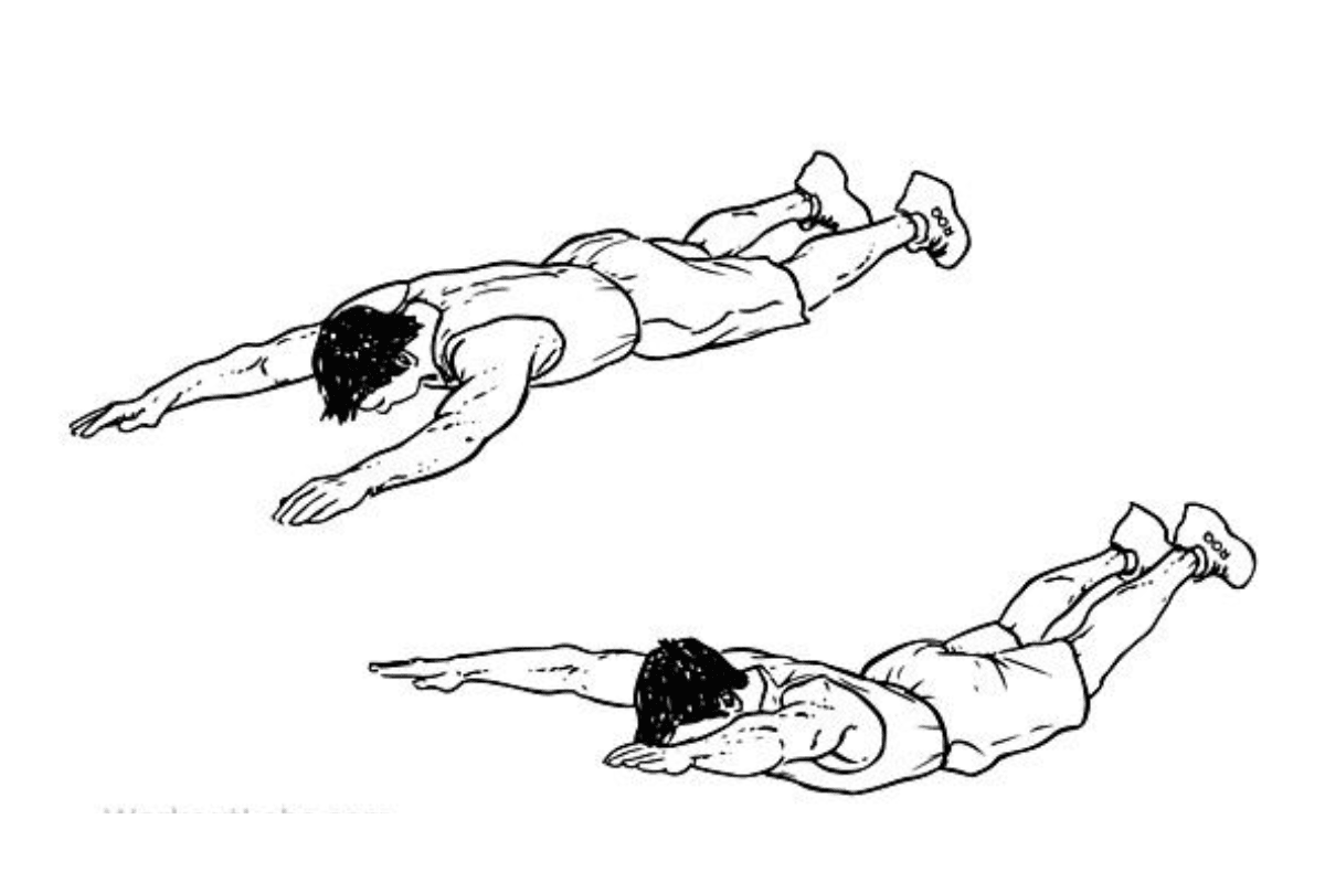 - हाथ और पैर एक साथ ऊपर उठाएं.