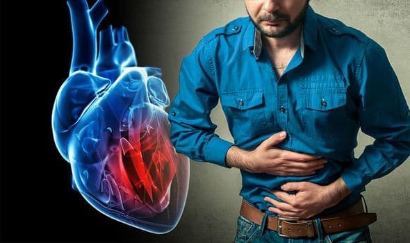 दिल के दौरे के दौरान, जब रुकावट के कारण अंग को ऑक्सीजन युक्त रक्त को शरीर के विभिन्न हिस्सों में पंप करने में कठिनाई होती है, तो रक्त परिसंचरण धीमा हो जाता है. पूरे शरीर में रक्त की आपूर्ति कम होने से पेट में रासायनिक परिवर्तन हो सकते हैं, जिससे यह क्षारीय से अम्लीय हो जाता है. जब पेट का पीएच कम हो जाता है, तो पाचन तंत्र सहित शरीर के अंगों को कुशलता से काम करना मुश्किल हो जाता है. यह कई गैस्ट्रोइंटेस्टाइनल मुद्दों की ओर जाता है.