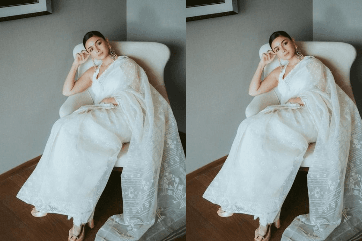 रकुल प्रीत सिंह की सफेद एंब्रॉइडरी साड़ी पर बेहद डेलिकेट वर्क किया गया था, जिससे उनका लुक काफी रीगल लगा. यह साड़ी उन महिलाओं के लिए परफेक्ट है, जो ट्रेडिशनल और मॉडर्न लुक का मिक्स चाहती हैं. इसे आप शादी या फेस्टिवल के दौरान स्टाइल कर सकती हैं, और इसके साथ स्टेटमेंट ज्वेलरी ऐड करें.