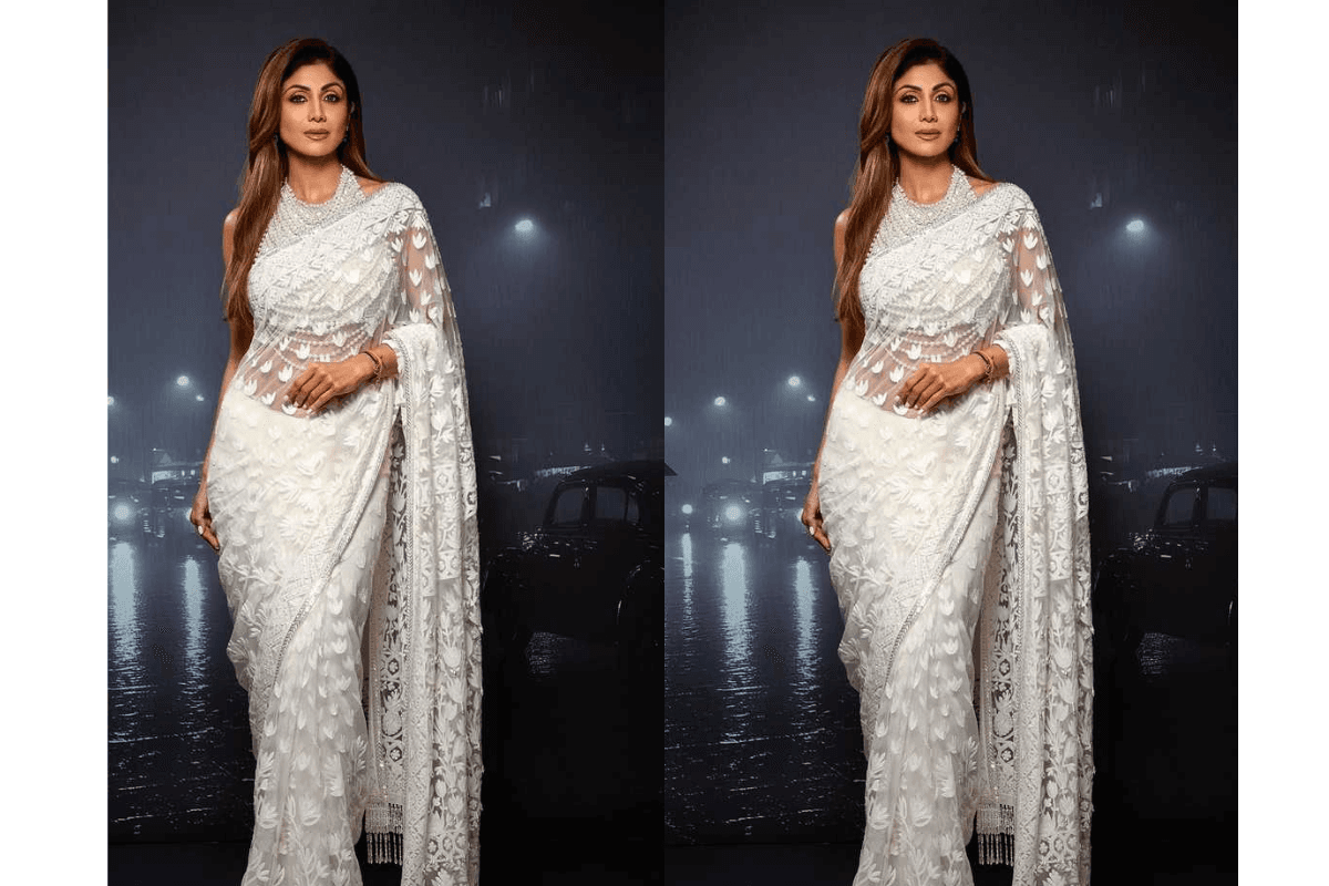 1. शिल्पा शेट्टी की व्हाइट चिकनकारी साड़ी