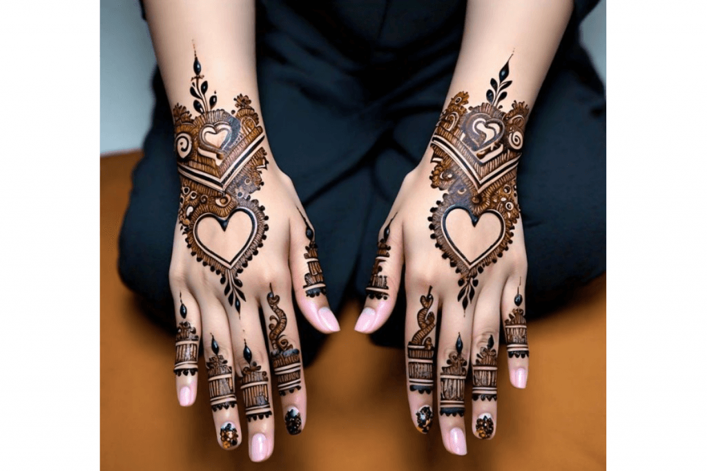 इस डिजाइन में उंगलियों को खासतौर पर सजाया जाता है और हाथ के पिछले हिस्से में सिंपल पैटर्न दिया जाता है, जिससे यह बेहद स्टाइलिश लगता है.