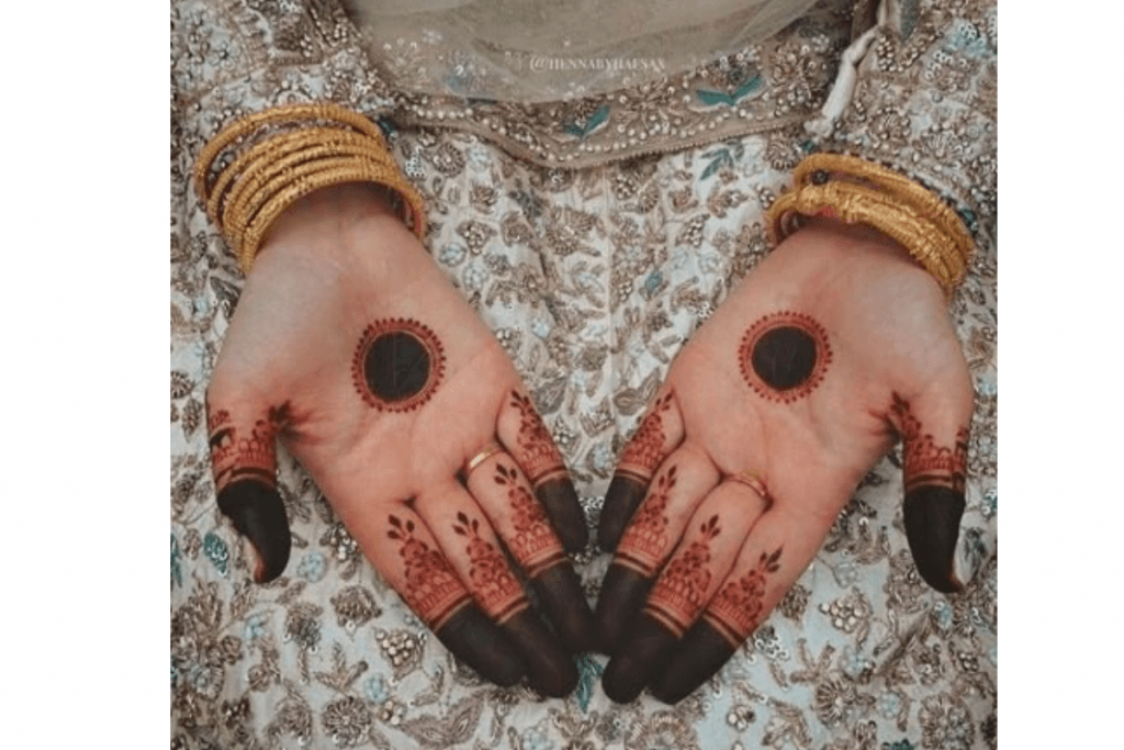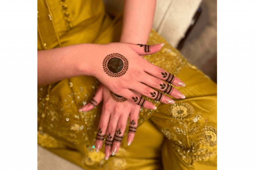 अगर आप सिंपल और क्लासी लुक चाहती हैं, तो सर्कल मेहंदी डिजाइन आपके लिए परफेक्ट रहेगा. इस डिजाइन में हथेली के बीच में एक सुंदर गोल आकृति बनाई जाती है और उंगलियों के सिरों पर भराव किया जाता है. यह एक पारंपरिक लेकिन आकर्षक लुक देता है.