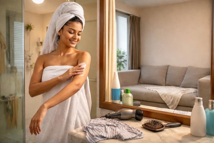 जब आप नहाकर निकलते हैं तो उस समय आपकी स्किन सबसे ज्यादा साफ रहती हैं और उसमें नेचुरल ऑयल्स भी काफी कम हो जाते हैं. ऐसे में अगर आप नहाने के तुरंत बाद शरीर में मॉइस्चराइजर नहीं लगाते हैं, तो आपकी स्किन ड्राई और बेजान लगने लगती है. सबसे बेहतर होगा कि आप नहाने के तुरंत बाद ही अपने शरीर में एक लोशन या फिर मॉइस्चराइजर जरूर लगाएं.