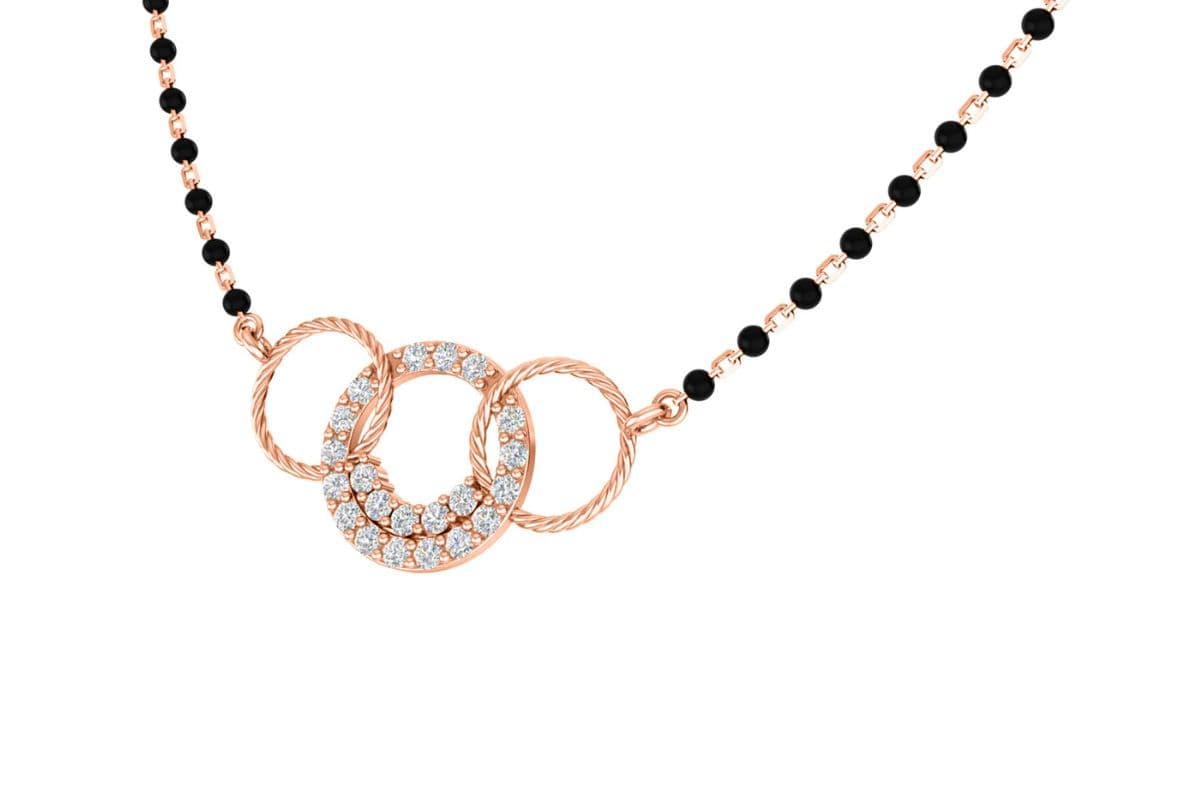 सिंगल डायमंड मंगलसूत्र एक छोटा और सुंदर हीरा पेंडेंट के साथ पतला सोने का चेन आजकल बहुत चलन में है. यह रोजमर्रा पहनने के लिए एकदम सही है.