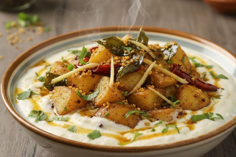 Aloo Dahi Tadka Recipe: आलू दही तड़का एक पारंपरिक और स्वादिष्ट उत्तर भारतीय व्यंजन है, जिसे घर पर आसानी से बनाया जा सकता है. यह हल्का होने के साथ-साथ पौष्टिक भी है. दही की खटास और आलू की नरमी इसे हर उम्र के लोगों के लिए पसंदीदा बनाती है. इसे आप किसी भी समय, चाहे लंच हो या डिनर, रोटी या पराठे के साथ सर्व कर सकते हैं. यह रेसिपी जल्दी बनती है और खाने में भी बहुत स्वादिष्ट लगती है.