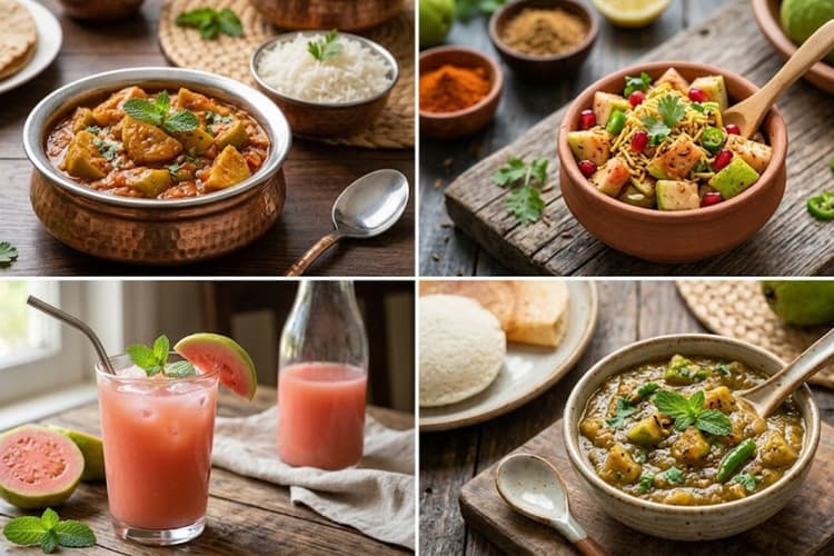 अमरूद एक स्वादिष्ट फल है जिसे आमतौर पर लोग अमरूद को सीधे नमक या चाट मसाला लगाकर खाते हैं, लेकिन क्या आप जानते हैं कि अमरूद से कई तरह की स्वादिष्ट और मजेदार रेसिपी भी तैयार की जा सकती हैं. अगर आप भी अमरूद को नए और अलग तरीके से खाना चाहते हैं, तो कुछ आसान और टेस्टी रेसिपी आइडियाज ट्राई कर सकते हैं. इस आर्टिकल में आप कुछ आसान और मजेदार अमरूद रेसिपी आइडियाज दिए गए हैं जिन्हें आप घर पर आसानी से ट्राई कर सकते हैं.