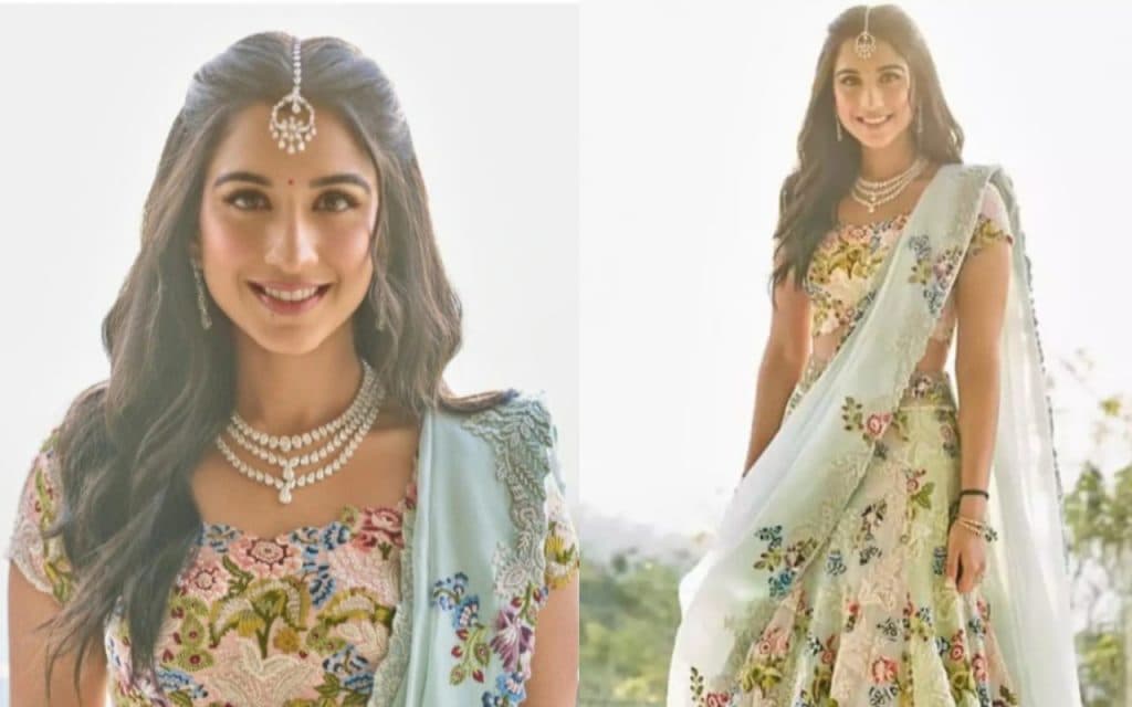 अपनी ”लगन लखवानु” सेरेमनी की रस्म के लिए राधिका मर्चेंट ने डिजाइनर अनामिका खन्ना का डिजाइन किया हुआ पेस्टल लहंगा पहना था. राधिका ने अपने उस लुक को डायमंड की ज्वैलरी के साथ पूरा किया था जो उनकी खूबसूरती पर चार चांद लगा रहे थे. राधिका के लहंगे की खासियत ये थी कि इसमें सोने से फ्लोरल एंब्रॉडरी की गई थी, लहंगे के साथ राधिका ने उसका मैचिंग ब्लाउज और बॉर्डर वर्क वाला दुपट्टा पहना था और उन्हें अपने उस लुक के लिए लोगों की खूब सराहाना मिली थी.