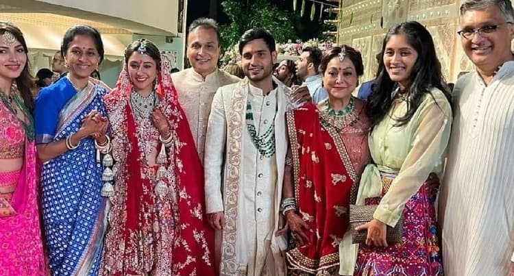 अनमोल अंबानी और कृशा शाह की शादी की तस्वीरों में साफ देखा जा सकता है कि दुल्हन बनी कृशा ने पींक लहंगा पहना हुआ है और अनमोल अंबानी शेरवानी में नजर आ रह हैं. कृशा और अनमोल के साथ इस तस्वीर में अनिल अंबानी भी नजर आ रहे हैं. वहीं प्री-वेडिंग सेलिब्रेशन की तस्वीरों में दुल्हन ब्लू ने लहंगा चोली और स्टेटमेंट ज्वैलरी पहनी थी और अनमोल को कुर्ता सेट में थे. वहीं अनमोल की मां टीना अंबानी ने शुक्रवार को आयोजित मेहंदी समारोह के लिए एक साड़ी पहनी थी जिसे उन्होंने स्टेटमेंट ज्वैलरी के साथ एक्सेस किया था. तस्वीरों में अनिल अंबानी को कुर्ता सेट पहने नजर आए थे.