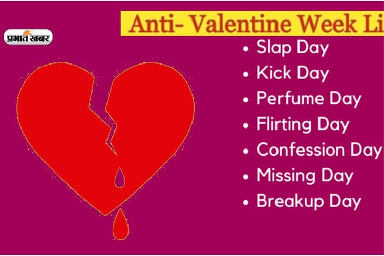 Anti-Valentine Week : फरवरी में वैलेंटाइन वीक सेलिब्रेट किया जाता है जो 7 फरवरी से 14 फरवरी तक होता है.लेकिन क्या आप जानते हैं कि 15 फरवरी से एंटी वैलेंटाइन वीक शुरू हो जाता है. यह उन लोगों के लिए है जो प्यार में नहीं हैं या जिन्हें प्यार में धोखा मिला है.यह वीक वैलेंटाइन के रोमांटिक माहौल से बिल्कुल अलग होता है.एंटी वैलेंटाइन वीक 15 फरवरी से 21 फरवरी तक सेलिब्रेट किया जाता है.जहां वैलेंटाइन वीक प्रेमी जोड़े मनाते हैं वहीं एंटी वैलेंटाइन वीक टॉक्सिक रिलेशनशिप से बाहर निकलने के लिए होता है.तो आइए जानते हैं एंटी वैलेंटाइन के दिनों को.