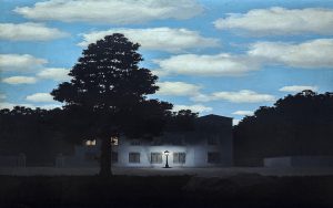 चित्रकार रेने मग्रीट (1898-1967) को पश्चिम के अति-यथार्थवादी कला आंदोलन के प्रमुख चित्रकार के रूप में जाना जाता है. ‘प्रकाश का साम्राज्य’ शीर्षक से बनाये गये इस चित्र में रेने मग्रीट ने एक ही चित्र में दिन और रात को दिखाने के लिए दोनों अर्थात कृत्रिम और प्राकृतिक प्रकाश को चित्रित किया है. चित्र के ऊपरी हिस्से में, जहां नीले आसमान पर बादलों के थक्कों को देखा जा सकता है, सूरज के डूबने के बाद की रौशनी है. इस चित्र के निचले हिस्से में अंधेरा है. यहां दिन ढलने के बाद कम रौशनी में सभी पेड़ों का रंग गहरा हो चुका है. इस हिस्से में मकान के अंदर के कमरों में और मकान के अहाते में बिजली की रौशनी की मौजूदगी इस चित्र का एक महत्वपूर्ण पक्ष है क्योंकि यह आकाश पर फैले प्राकृतिक प्रकाश के साथ एक द्वंद्व रचती है. सरल से लगने वाले इस चित्र में चित्रकार ने रात और दिन के अंतर को दो भिन्न किस्म के प्रकाश स्रोतों के माध्यम से दिखाया है. कैनवास पर तेल रंग से बना यह चित्र अमेरिका के न्यूयॉर्क स्थित गुगेनहाइम कला संग्रहालय में प्रदर्शित है.