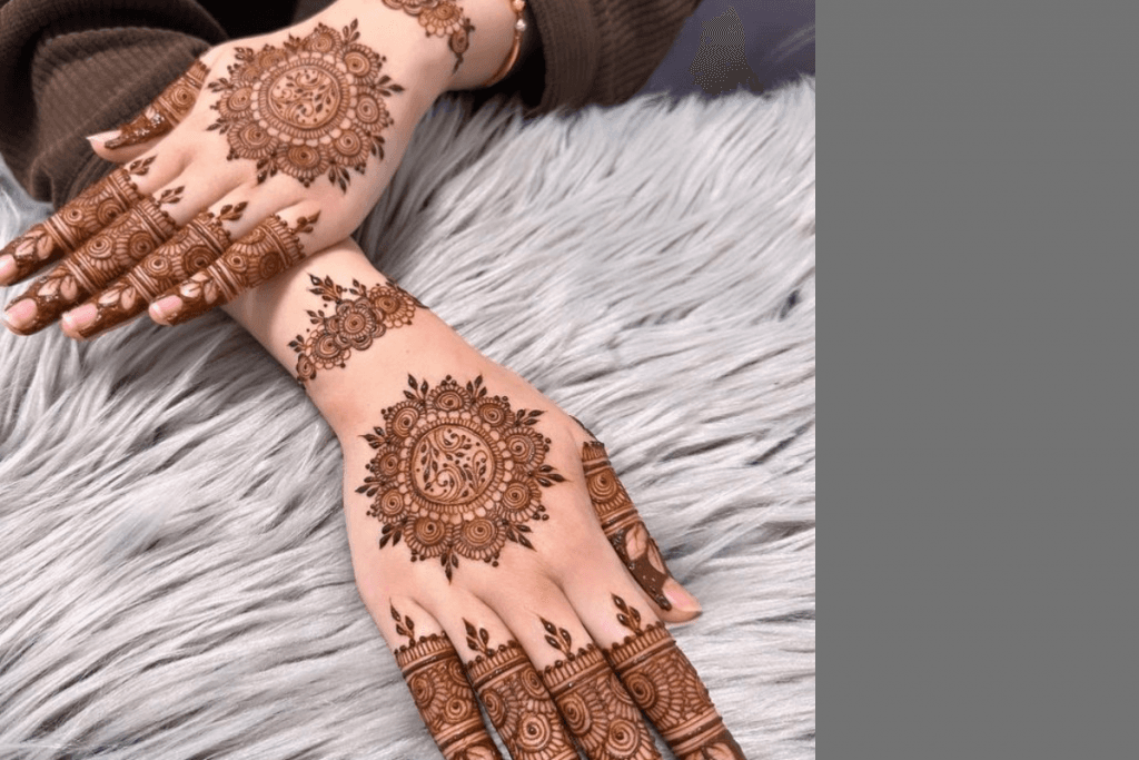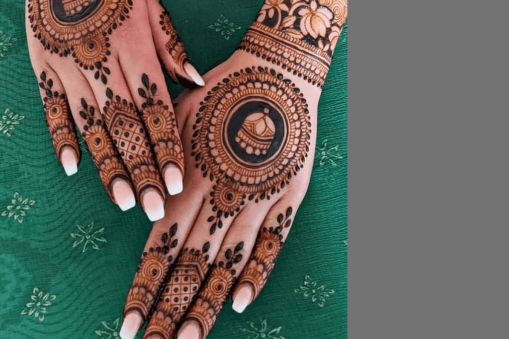 गोल टिक्का डिजाइन भी बैक हैंड मेहंदी के सबसे पॉपुलर डिजाइन में से एक है. इस डिजाइन में हाथों के बीचों-बीच गोलाकार टिक्का बनाया जाता है, जिसके चारों ओर छोटे-छोटे पैटर्न्स बनाए जाते हैं. यह डिजाइन खासकर उन महिलाओं के लिए उपयुक्त है जो सिंपल लेकिन आकर्षक लुक चाहती हैं.