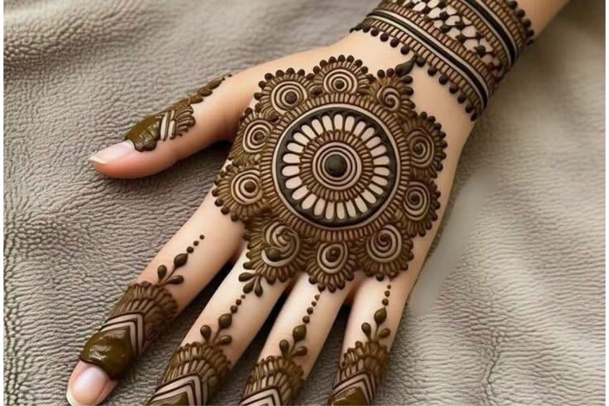 मंडला डिजाइन : मंडला एक गोल और आकर्षक पैटर्न होता है जिसे हाथ के बीच में बनाया जाता है. यह डिजाइन देखने में बहुत पारंपरिक और सुंदर लगता है और त्योहारों के लिए एकदम सही है.