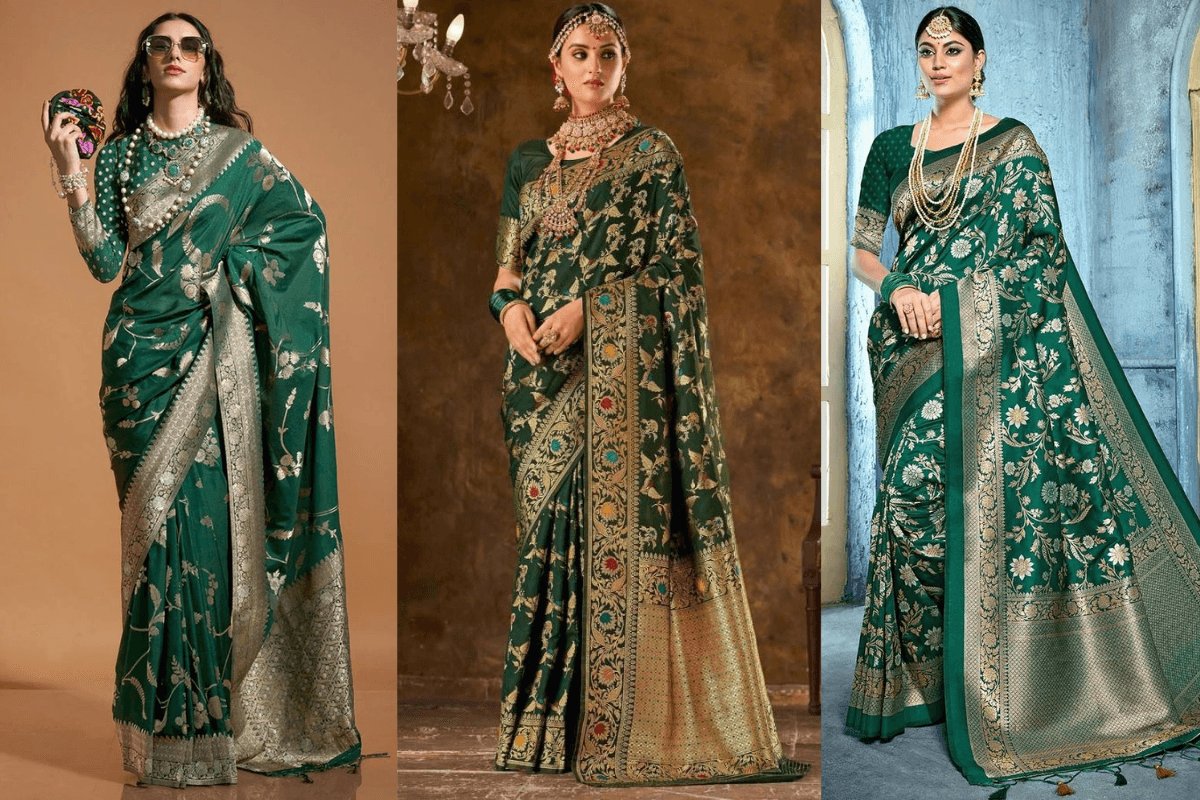 4. Green Banarasi Saree for Vat Savitri | हरी बनारसी साड़ी