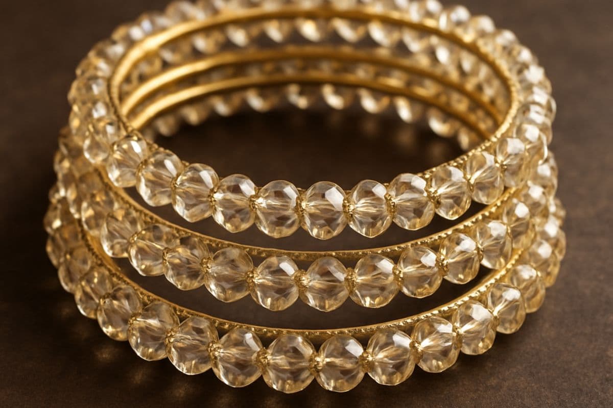 अगर आप चमक और शाइन पसंद करती हैं तो क्रिस्टल बीड्स वाली बैंगल्स आपके लिए बेस्ट रहेंगी. ये चूड़ी डिजाइन किसी भी त्योहार के लिए परफेक्ट है. आप इसे खास मौके के लिए पहन सकते हैं.