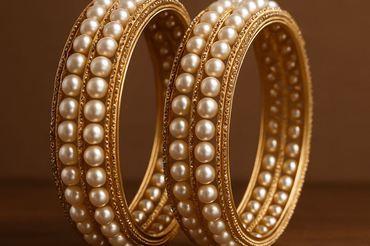 आप अगर कुछ सिंपल मगर एलिगेंट लुक पाना चाहती हैं तो आप पर्ल वर्क बैंगल्स को ट्राई कर सकती हैं. मोती की सजावट वाली बैंगल्स बहुत क्लासी और ग्रेसफुल लगती हैं. आप इन्हें हल्के रंग के आउटफिट्स या सिंपल साड़ियों के साथ पहन सकती हैं.