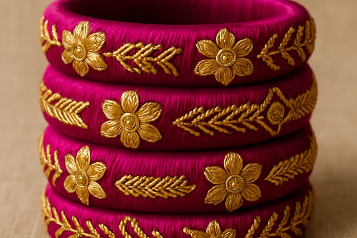 आजकल थ्रेड वाले बैंगल्स डिजाइन काफी पॉपुलर हैं. ये आपके फेस्टिव लुक के साथ अच्छे जाते हैं. आप इनको जरूर पहने और अपने लुक को खूबसूरत बनाएं.