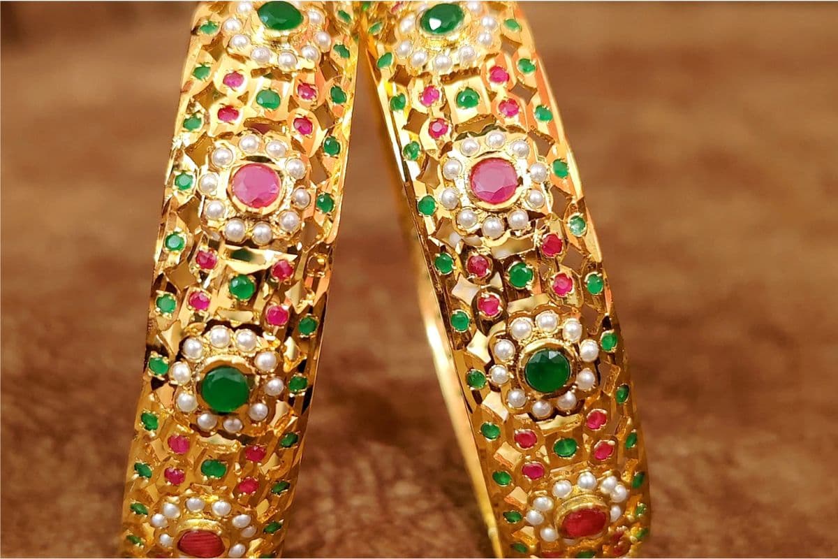 जड़ाऊ स्टोन बैंगल्स : भारी काम, मीनाकारी और जड़े हुए स्टोन्स के साथ यह देखने में बेहद ही खबसूरत लगती है.त्योहारों के लिए रंगीन कांच की चूड़ियां, मीनाकारी वाले मेटल बैंगल्स या हल्के सोने के डिजाइन पसंद किए जाते हैं.