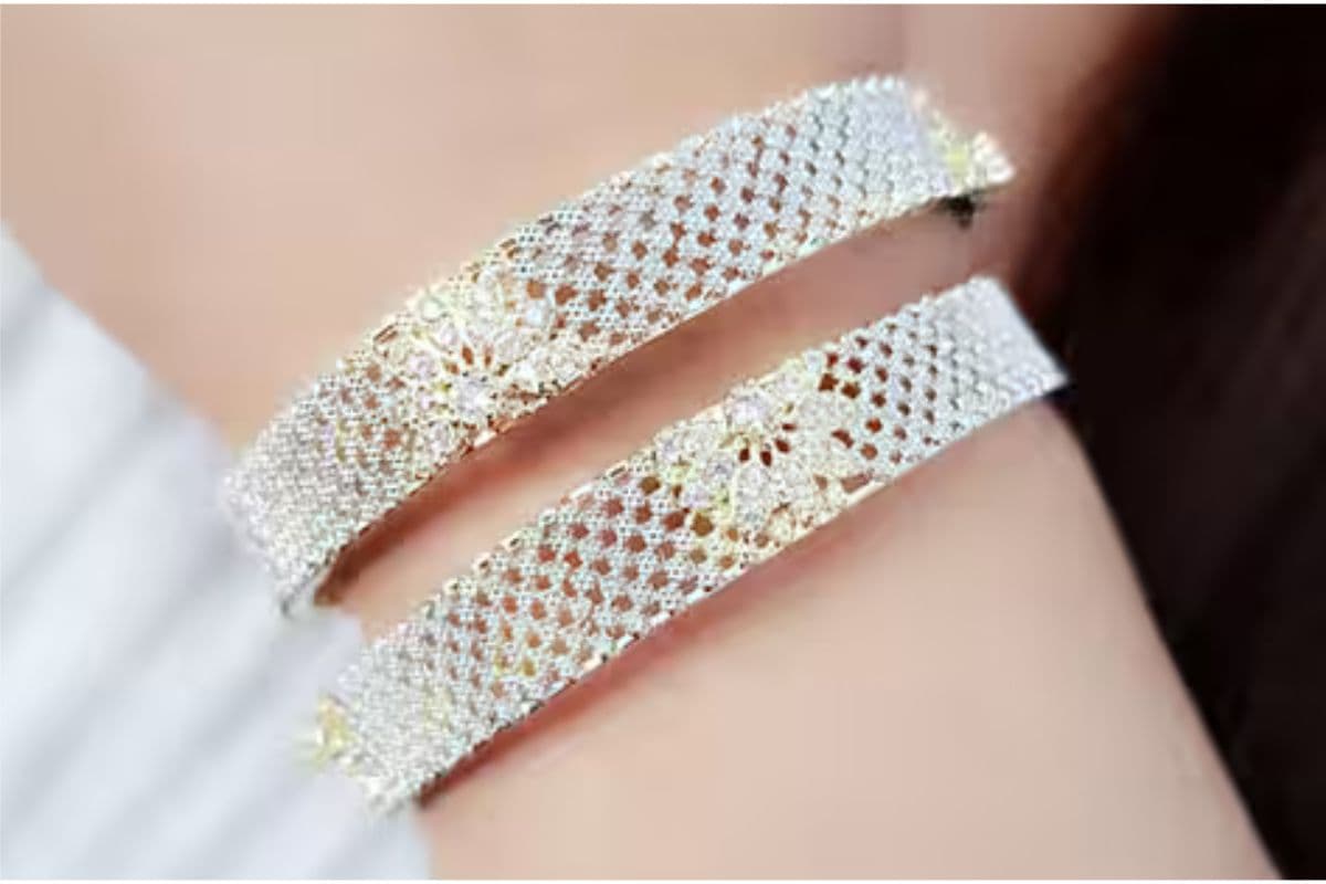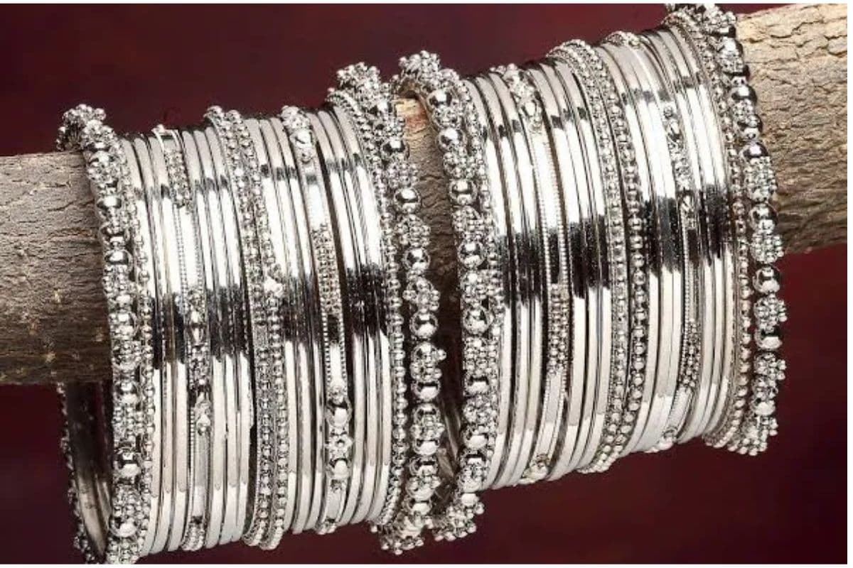 सिल्वर और ऑक्सीडाइज्ड स्टोन बैंगल्स : ये सिल्वर या ऑक्सीडाइज्ड मेटल पर जड़े रंगीन या सफेद पत्थरों के साथ आते हैं. ये वेस्टर्न और इंडो-वेस्टर्न आउटफिट्स के साथ बहुत अच्छे लगते हैं.ये कम महंगे होते हुए भी एक बोल्ड और स्टाइलिश लुक देते हैं.