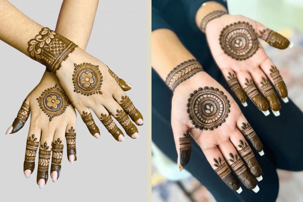 3.गोलाकार मेहंदी डिजाइन इस सीजन में काफी पॉपुलर है. इसमें बड़ी गोलियां और सुंदर बारीकियों से भरे पैटर्न होते हैं, जो हाथों पर एक आधुनिक और स्टाइलिश लुक देते हैं.