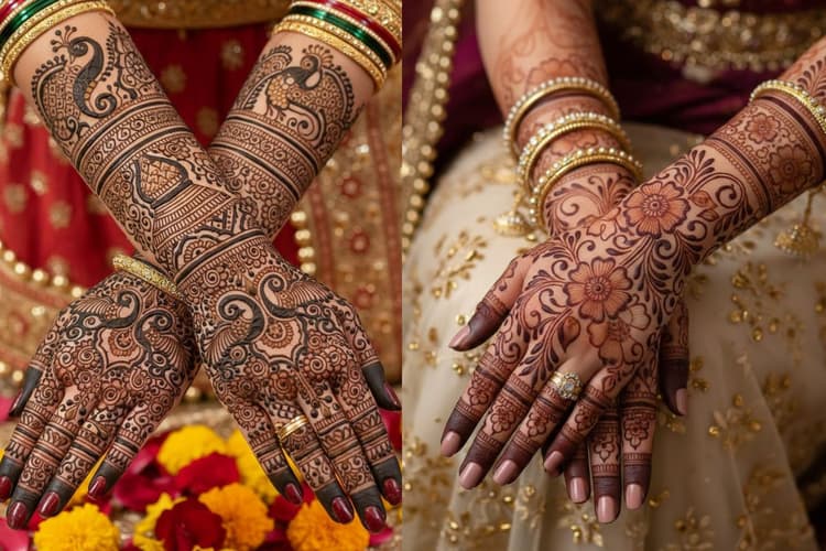 इसमें हाथों को पूरी तरह से जटिल पैटर्न, फूल, पत्तियां और बारीक जाल से भरा जाता है. यह क्लासिक लुक दुल्हन को रॉयल अंदाज देता है.