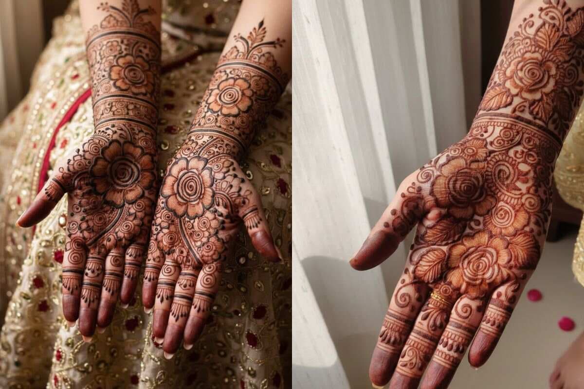 जो महिलाएं हल्की और जल्दी बनने वाली मेहंदी पसंद करती हैं उनके लिए सिंपल फ्लावर मेहंदी डिजाइन सबसे सही है. ये डिजाइन कम समय में तैयार हो जाती है और रोजाना के छोटे फंक्शन के लिए भी परफेक्ट रहती है.