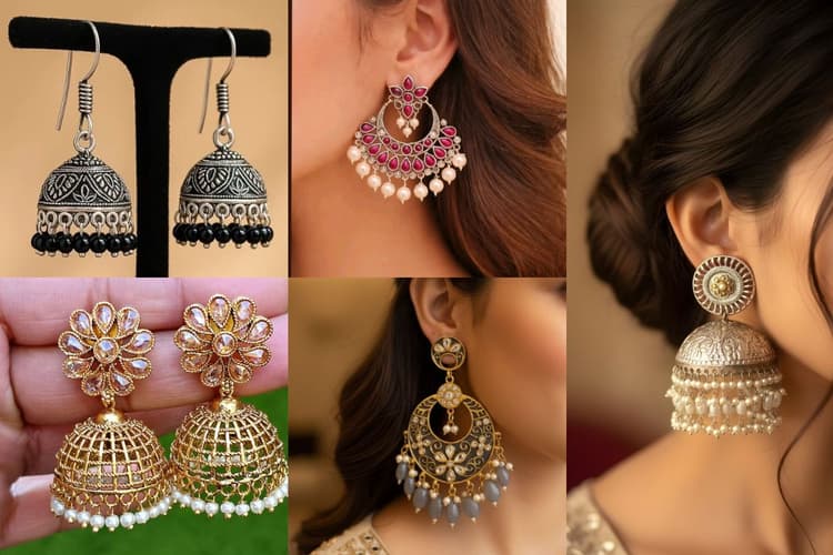 Earrings for Traditional Dresses: किसी भी शादी या फंक्शन में जब हम सूट या साड़ी पहनते हैं तो सारा ध्यान कपड़ों पर ही रहता है. लेकिन क्या आप जानते हैं कि एक गलत ज्वेलरी सिलेक्शन आपके पूरे लुक को फीका कर सकता है. खासकर झुमके किसी भी ट्रेडिशनल आउटफिट की जान होते हैं जो साधारण से लुक को भी रॉयल बना देते हैं. सही झुमके न केवल आपके चेहरे की खूबसूरती को उभारते हैं बल्कि आपको भीड़ से अलग भी दिखाते हैं. अक्सर महिलाएं कंफ्यूज रहती हैं कि किस तरह के कपड़ों के साथ कैसे झुमके मैच करें. आज इस आर्टिकल में हम आपको झुमकों के उन 3 शानदार डिजाइन्स के बारे में बताएंगे जो हर इंडियन आउटफिट के साथ परफेक्ट लगते हैं और जिन्हें पहनकर आप किसी अप्सरा से कम नहीं लगेंगी.