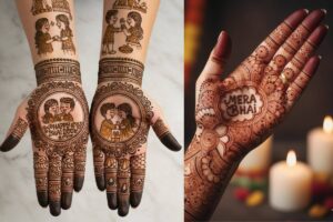 राखी इंस्पायर्ड मेहंदी डिजाइन भाई-बहन के रिश्ते को और प्यार को दिखाती हैं. भाई दूज या राखी जैसे अवसर पर ये डिजाइन हाथों की रौनक बढ़ा देती हैं.