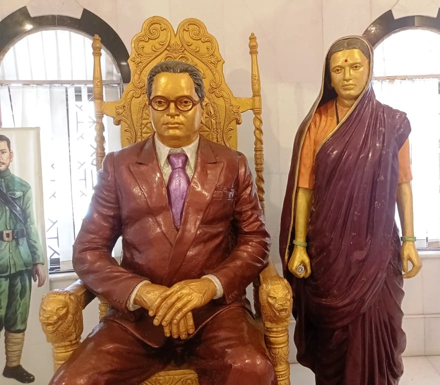स्मारक के ठीक सामने बाबा साहेब की विशाल प्रतिमा