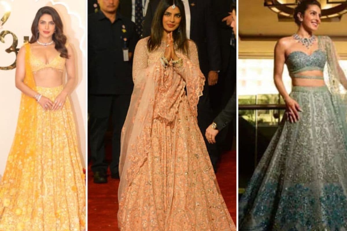 बॉलीवुड और हॉलीवुड की फेमस एक्ट्रेस प्रियंका चोपड़ा ब्राउन स्किन टोन के साथ अक्सर पार्टियों में लेहंगा पहनकर आती हैं. हल्के पीच और शिमरी डिजाइन के लहंगे में वह बहुत सुंदर लगती हैं. आप प्रियंका चोपड़ा के इन लहंगों से इंस्पिरेशन लेकर अपने खास फंक्शन के लिए लहंगा चुन सकती हैं.