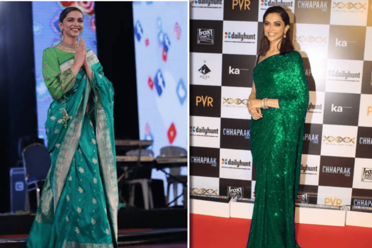 दीपिका पादुकोण की सीक्वेंस और सिल्क साड़ी बहुत ही स्टाइलिश और सुंदर है. सावन के मौसम में यह साड़ियां खासतौर पर पारंपरिक और फैशनेबल लुक देती हैं.
