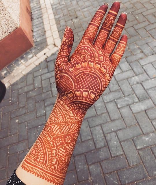 इस डिज़ाइन में आपको कली, मंडल और अन्य पारंपरिक भारतीय प्रतीकों का इस्तेमाल देखने को मिलेगा, इसे आपके हाथ की पूरी हथेली पर फैलाया जा सकता है, यह डिज़ाइन न केवल सुंदर है, बल्कि आपके संस्कृतिक जुड़ाव को भी दर्शाता है.