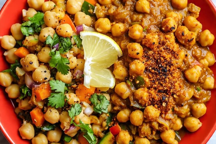 उबले हुए चने, कटे हुए प्याज, टमाटर, खीरा, हरा धनिया, नींबू का रस और चाट मसाला व काला नमक जैसे मसालों से बना एक ताज़ा और स्वास्थ्यवर्धक व्यंजन.