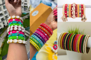 शेल या सीपियों वाले बैंगल्स गरबा लुक में ट्रेडिशनल टच देते हैं. ये हल्के और आरामदायक होते हैं, जिससे नाचते समय परेशानी नहीं होती. समुद्र जैसा टच और नैचुरल फील देता है. इन्हें किसी भी रंग के लहंगे के साथ मैच किया जा सकता है.